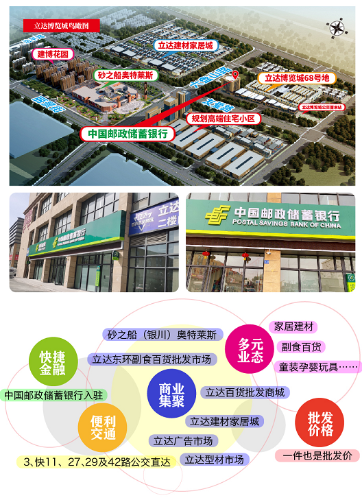 銀行等(deng)(deng)金(jin)融機構的(de)(de)選址(zhi)非常嚴苛,往往選擇城(cheng)(cheng)(cheng)市(shi)中(zhong)(zhong)心地段(duan)(duan),或最具發展(zhan)潛力的(de)(de)地段(duan)(duan)。中(zhong)(zhong)國郵政儲蓄銀行六盤山東路營(ying)業所強勢入駐立(li)達博(bo)覽(lan)城(cheng)(cheng)(cheng),正(zheng)是基(ji)于對于銀川城(cheng)(cheng)(cheng)南片區及立(li)達博(bo)覽(lan)城(cheng)(cheng)(cheng)發展(zhan)的(de)(de)長期(qi)看好(hao)。目前(qian)立(li)達博(bo)覽(lan)城(cheng)(cheng)(cheng)招(zhao)商(shang)加(jia)速完(wan)(wan)成、市(shi)場運營(ying)全(quan)面(mian)開啟、各項(xiang)配套完(wan)(wan)善賦(fu)能,立(li)達博(bo)覽(lan)城(cheng)(cheng)(cheng)跨建材、家(jia)居、廣告、型材、副(fu)食(shi)、百(bai)(bai)貨、奧特萊斯(si)等(deng)(deng)于一(yi)體(ti)的(de)(de)完(wan)(wan)整商(shang)住(zhu)體(ti)系正(zheng)在快速形成,這將極大地方便和(he)滿足銀川市(shi)民(min)對物美價(jia)廉的(de)(de)建材、家(jia)居、休閑、娛(yu)樂(le)、副(fu)食(shi)、百(bai)(bai)貨、童裝批零(ling)采購采購和(he)消費者游購娛(yu)一(yi)站優享生活(huo)的(de)(de)新(xin)需求。
